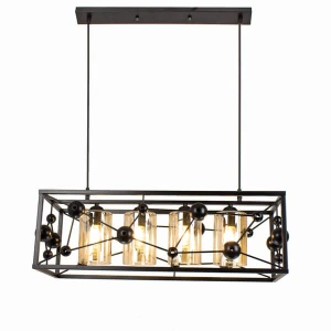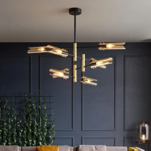 Vintage 8 Heads Linear Bars Chandelier Amber Glass Lighting - Warm White