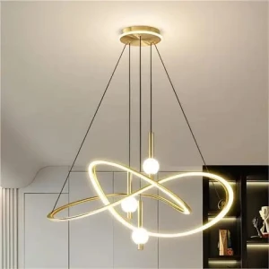 Golden Infinity Loop Pendant Hanging Chandelier - Warm White