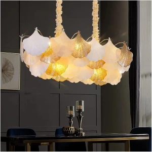 Luxury Aluminium Body White Golden Clear Glass Leaf Chandelier - Warm White (800 * 300 Oval)