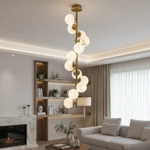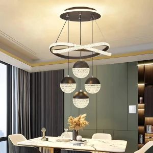Celestial Charm Chandelier Golden Twisted Curl Ball Lights Chandelier - Tricolour