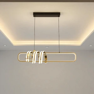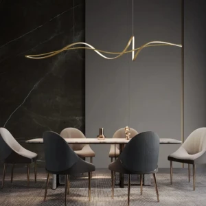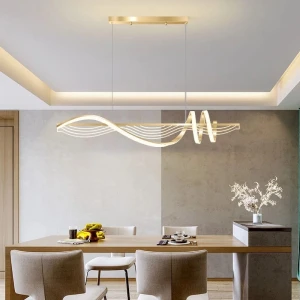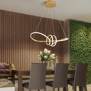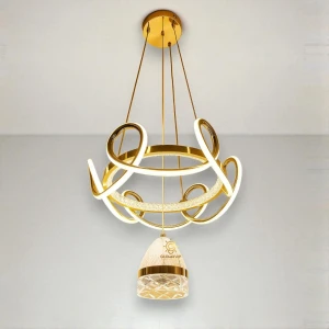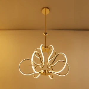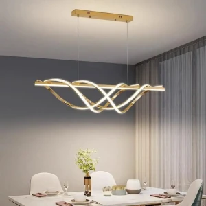 Golden LED Wavy Metal Profile Light Pendant Chandelier - Tricolour