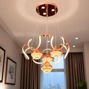 Rose Gold LED Twisted Curl Pendant Chandelier Light -Tricolour