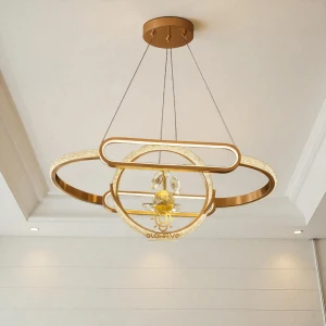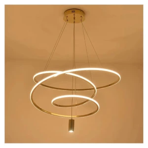 Infinite Rings Chandelier Golden LED Metal 3 Light Rings Crystal Pendant Light - Tricolour