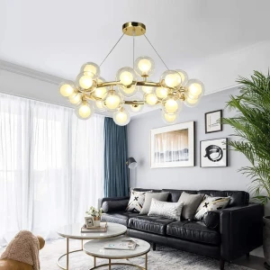Golden Circular Pendant Smoky 45 Glass Balls Light Chandelier - Warm White (6255-45L Smoky)