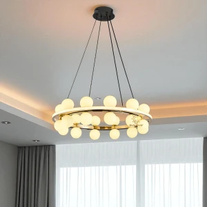 Golden Circular Pendant 12 White Frosted Glass Balls Light Chandelier - Warm White (8098-12L)
