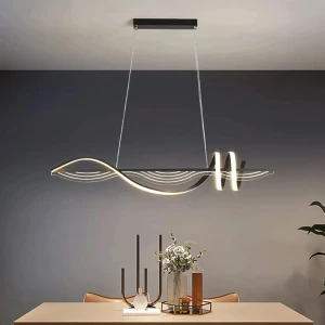 Black LED Wavy Metal Profile Light Pendant Chandelier - Tricolour