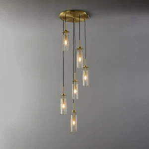 Golden Cylindrical Crackle Glass Shade 6 Lights Pendant Hanging Light - Warm White