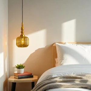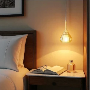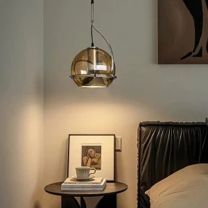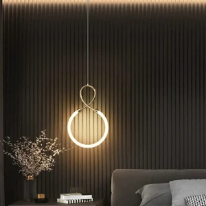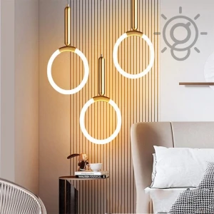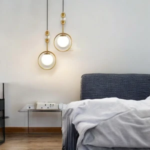 Golden LED Round Bedside 1 Pendant Hanging Light - Tricolour Light