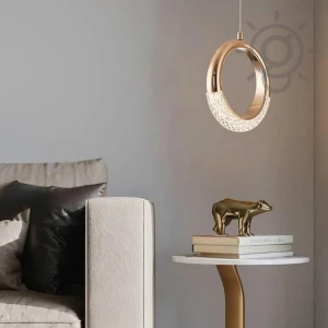 Ring Doughnut Golden Crystal Bedside Pendant Hanging Light - Trichromatic