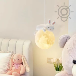 Cute Sleepy Bunny Sphere Bedside Pendant Hanging Light for Kids' Room - Warm White