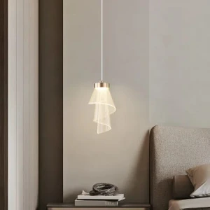 Spiral Gold Acrylic Bedside Pendant Hanging Light - Warm White