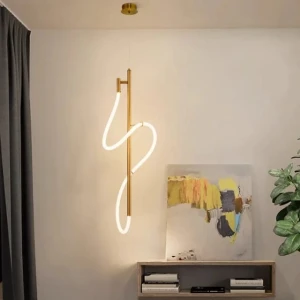 Long LED Golden Pendant Acrylic Flex Tube Hanging Light - Tricolour (582-GD HL)