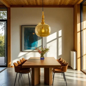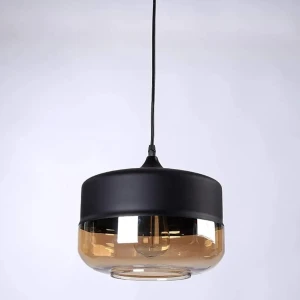 Black Finish Amber Glass Pendant Hanging Light - Warm White