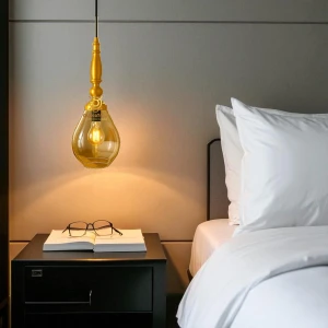 Stylish Drop Shape Amber Glass Pendant Hanging Lamp Light - Warm White (3321/1 - Amber )