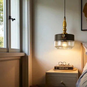 Black Golden Circular Bedside Pendant Hanging Light - Tricolour Light
