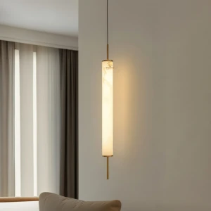 Golden Metal Imitation Marble Cylindrical Pendant Hanging Light - Tricolour