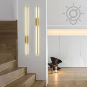 Modern Metal Acrylic Pipe LED Long Golden Wall Lamp - Warm White