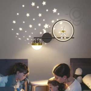 Starry Moon Sky Astronaut Golden LED Wall Lamp for Kids Room - Warm White