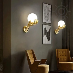 Creative Wall Light Golden Finish Resin Hand Holding Ball LED Wall Lamp - Warm White