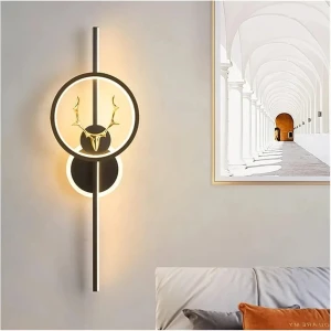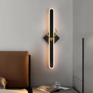 Black Golden Curl 600mm LED Long Tube Deer Wall Light - Tricolour
