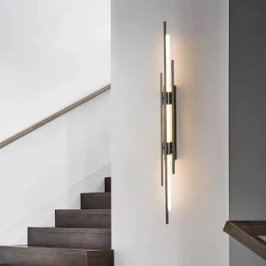 Modern Metal Acrylic Pipe LED Long Black Golden Wall Lamp - Warm White