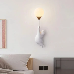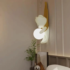 Cute Resin Brown Squirrels Holding Globe Wall Lamp - Warm White