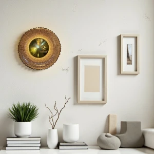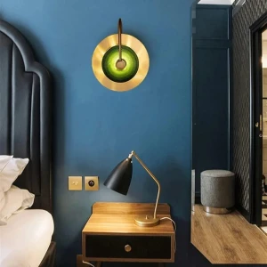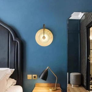 Gold Finish Ceramic Plate Round Light Wall Lamp - Warm White