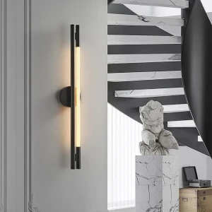 Modern Marble Texture Plate Black LED Long Tube Wall Light - Tricolour