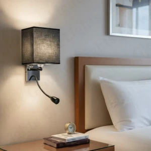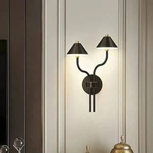 Gold Base Black Fabric Double Head Lamp Wall Lamp - Warm White