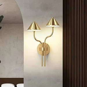 Antique Gold Finish Dual Head Wall Lamp - Warm White