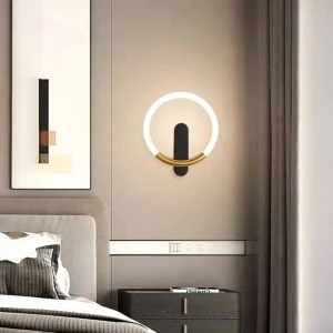 Modern Metal Acrylic Round Ring Black LED Wall Lamp - Warm White