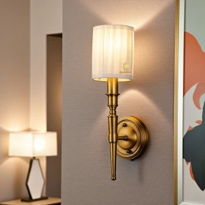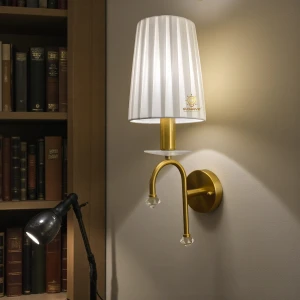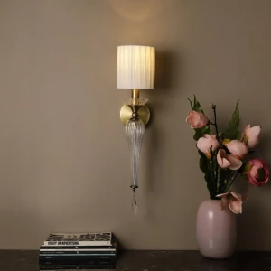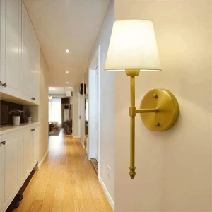 Gold Finish Base Fabric Lamp Shade Wall Lamp - Warm White