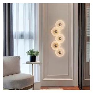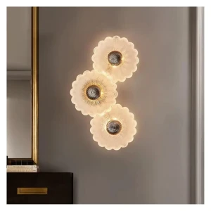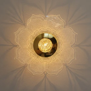 Golden Acrylic Light Round Flower Design Wall Lamp - Tricolour