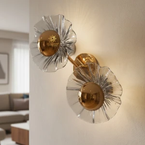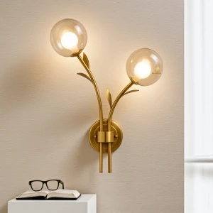 Creative Amber Glass Gold Finish Double Head Light Wall Lamp - Warm White