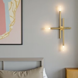 Gold Geometric Pattern 3 LED Light Long Tube Wall Lamp - Tricolour