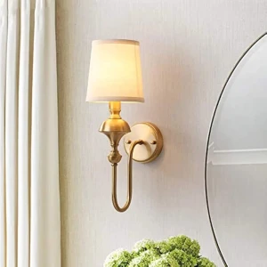 Antique Gold Finish Fabric Lampshade Wall Lamp - Warm White