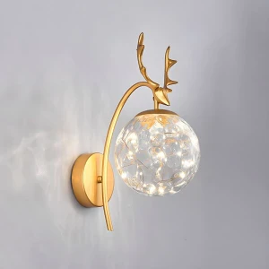 Clear Glass Ball Full Stary LED Deer Head Wall Lamp - Tricolour