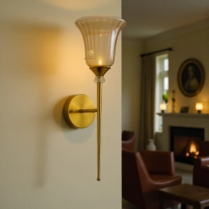 Clear Glass Golden Finish Light Wall Lamp - Warm White