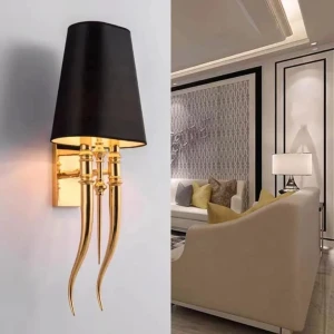 Gold Base Black Fabric Lamp Shade Wall Lamp - Warm White