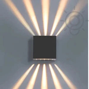 12 Watts 4 Way LED Laser Outdoor Square Wall Light Waterproof (Warm White)