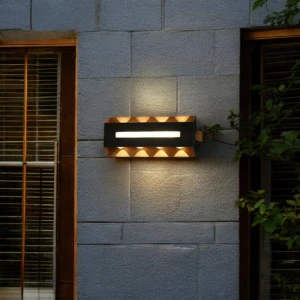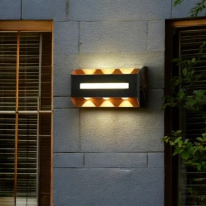Outdoor Waterproof Cubical Fringe Pattern Black Wall Light - Warm White