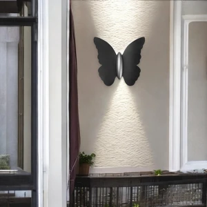 Outdoor Wall Light Black Butterfly Artistic Aluminium Wall Lamp, Waterproof - Warm White