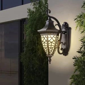 Decorative Outdoor Glass Wall Lamp Vintage Black Wall Lantern - Warm White (Small)