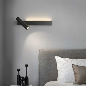 Black LED Wall Lamp with Adjustable Spot Light - Tricolour