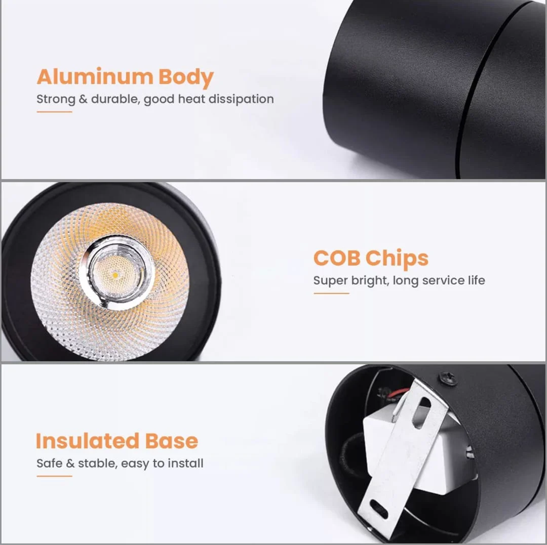 Introducing our 12 Watts Black Rose Gold Reflector Adjustable LED Round Surface Light – the perfect blend of style and functionality for your indoor spaces. This sleek and modern cylindrical-shaped spot light is designed to add a touch of sophistication to any room. Crafted with an aluminum body, this surface-mounted light guarantees durability and longevity. The black rose gold reflector not only adds a touch of elegance but also enhances the overall aesthetic appeal of your ceiling. With a modest height of 10cm, it seamlessly integrates into your indoor environment. The adjustable feature allows you to direct the natural white glow precisely where you need it, providing both practical lighting and an inviting atmosphere. The 12 Watts power output ensures ample brightness while remaining energy-efficient, making it an eco-friendly choice for your home or office. Upgrade your interior lighting with the 12 Watts Black Rose Gold Reflector Adjustable LED Round Surface Light. Elevate your space with its contemporary design, practical functionality, and warm white illumination. Experience the perfect combination of style and efficiency in one striking ceiling-mounted spot light.