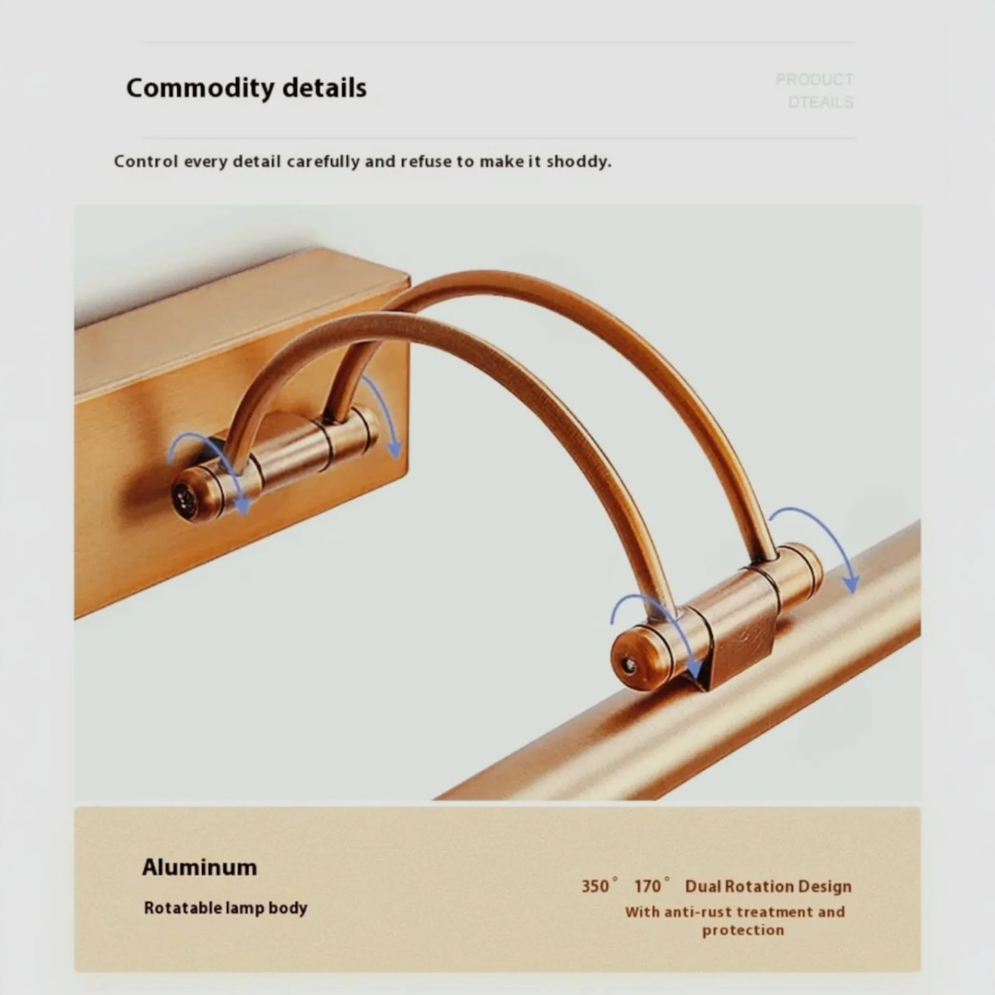 Classic Golden LED Light with Adjustabe Head Mirror Light - Warm White