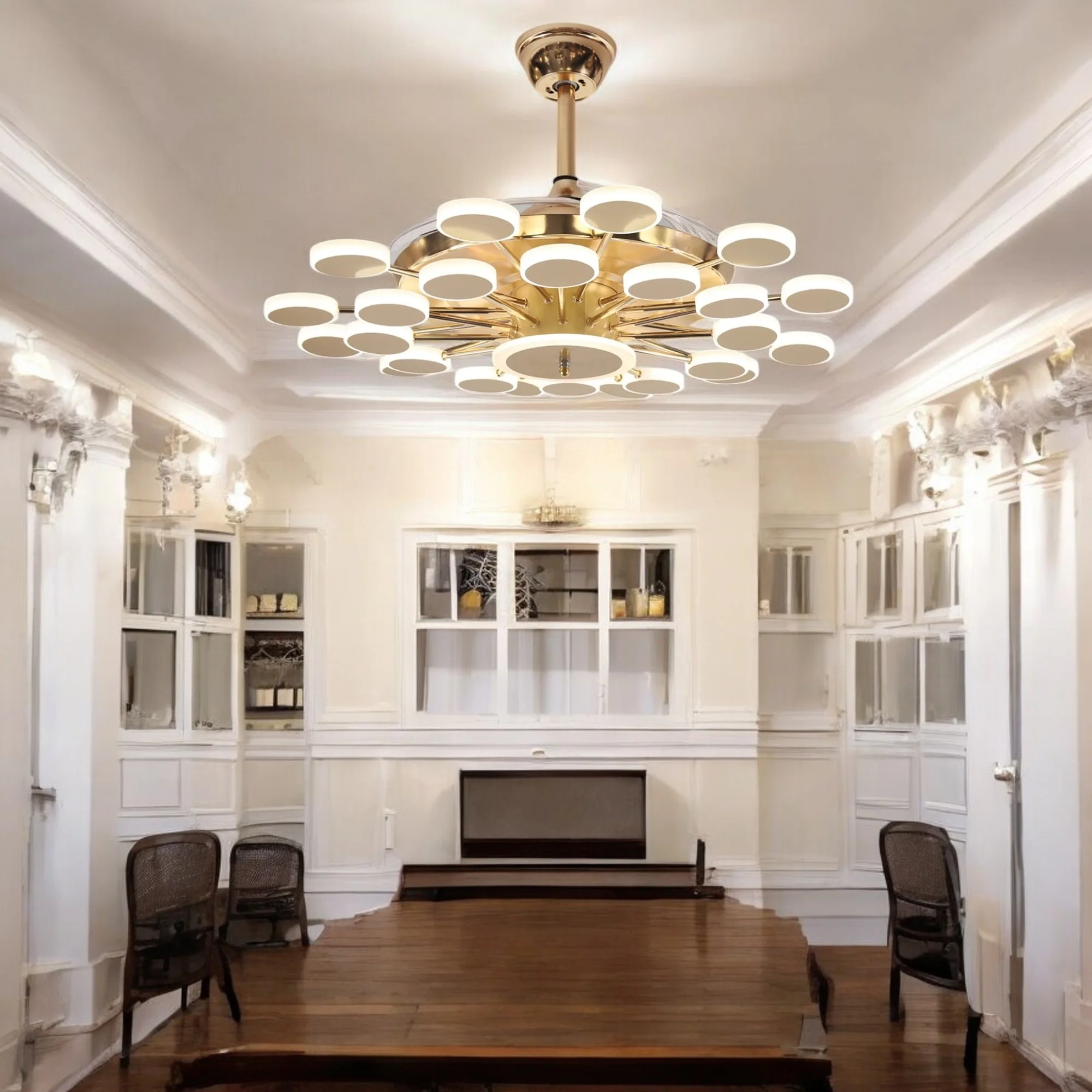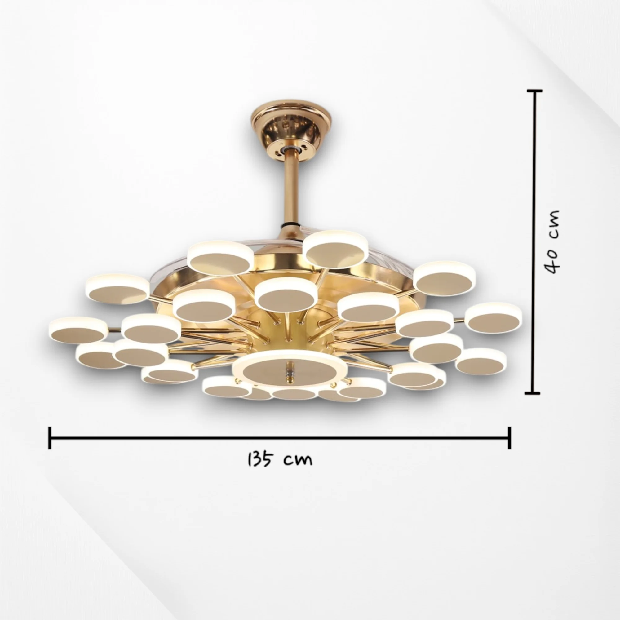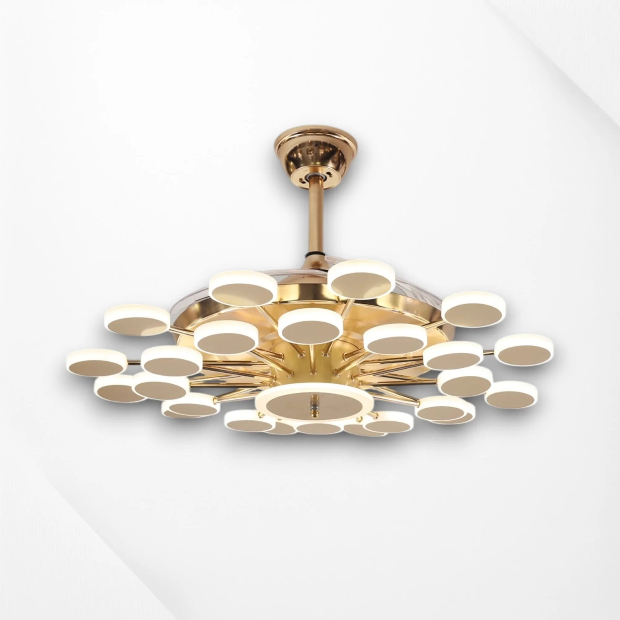 24 Light Chandelier Fan 42 Inch Gold Retractable Blades Remote Control - Tricolour