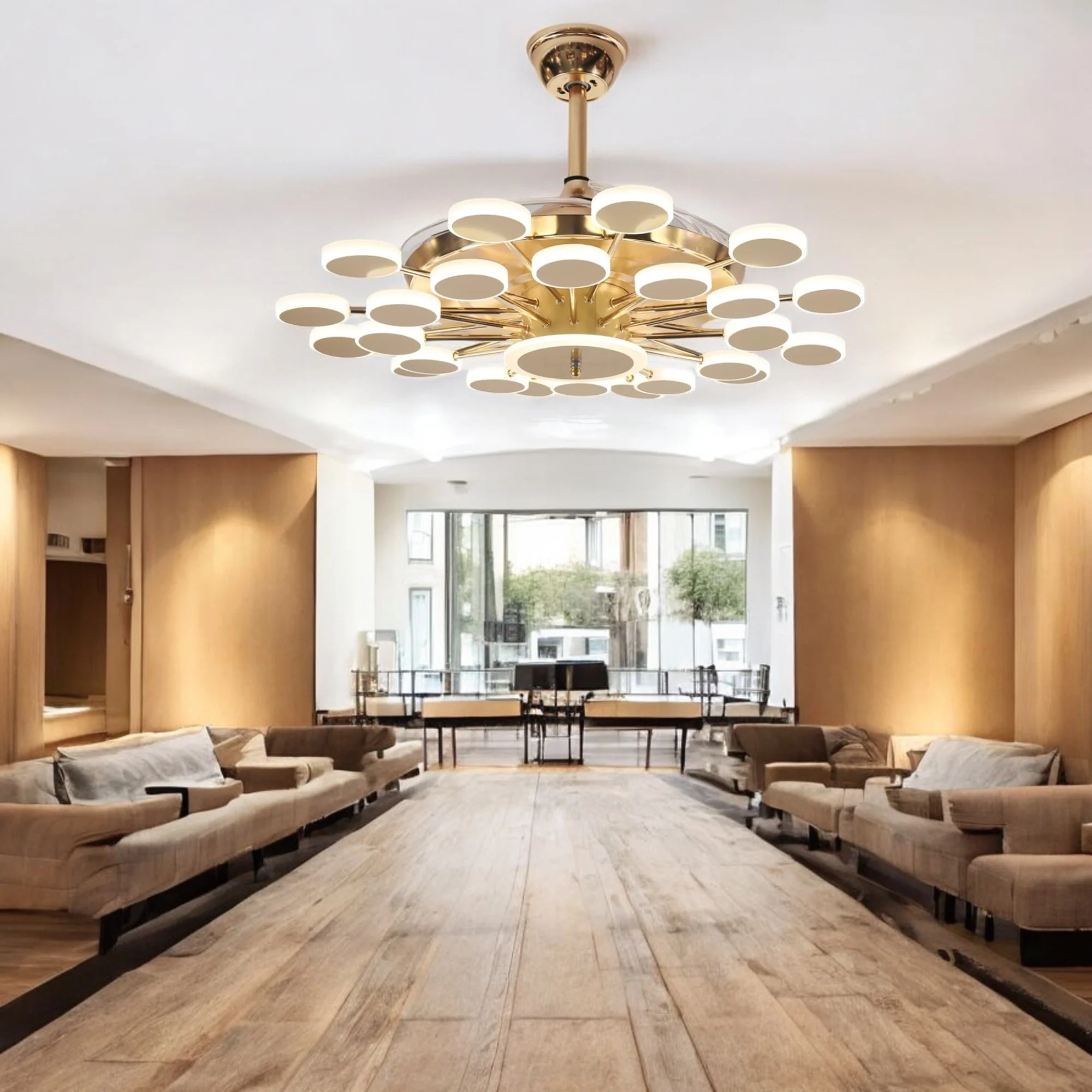 - Metal body with 24 Rings light attached , and ABS fan blades with copper binding motor chandelier fan