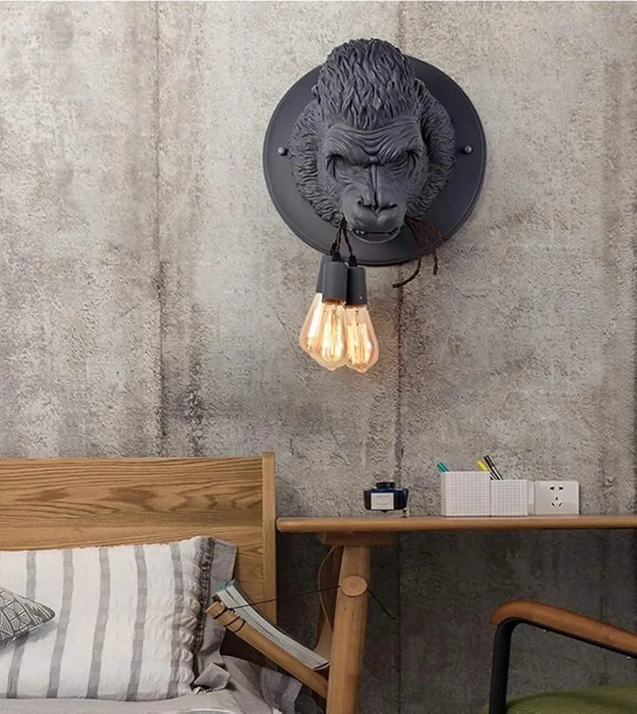 3D Chimpanzee Face Black Gorilla Wall Lamp