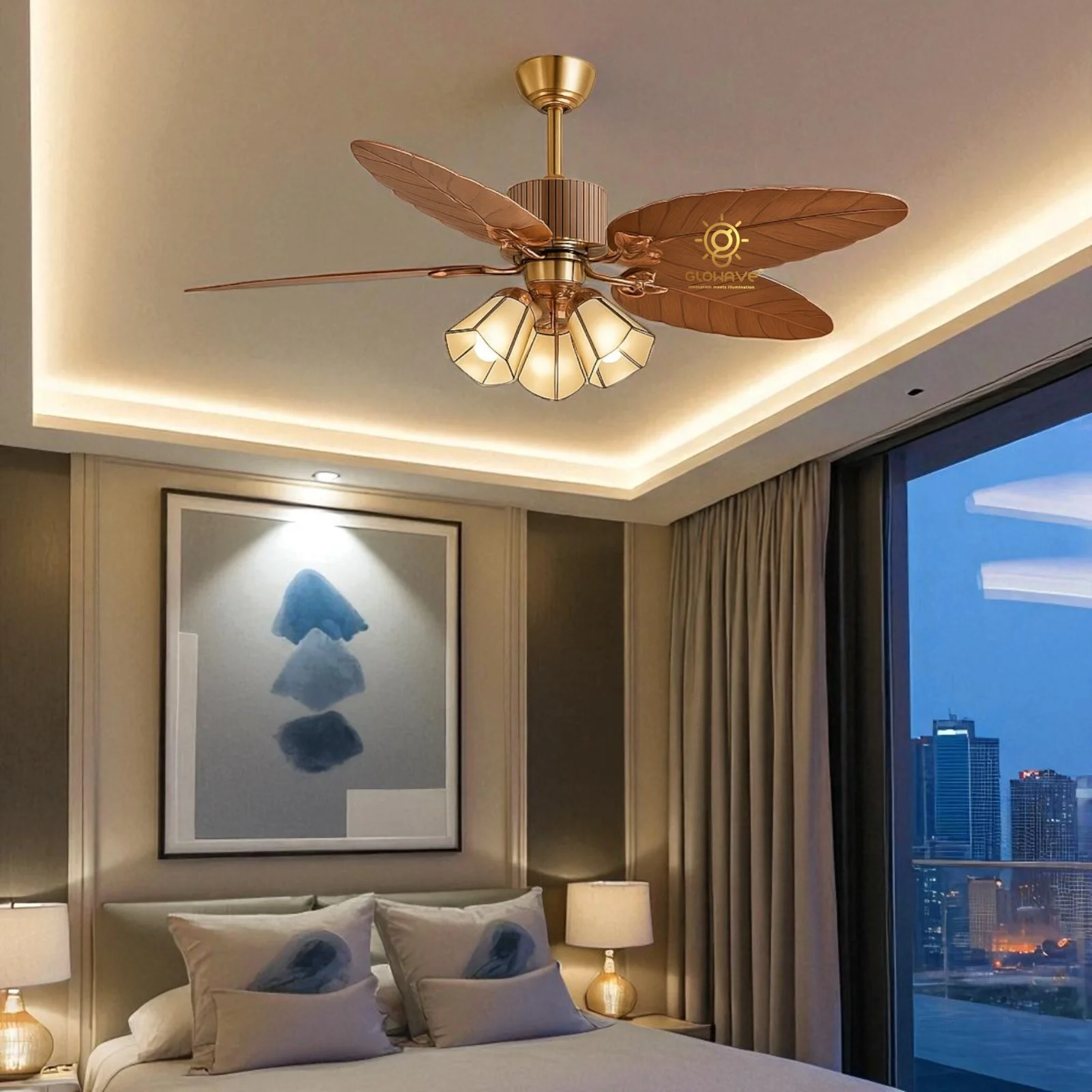 5 Brown Palm Leaf Wooden Crafted ABS Blades Chandelier Fan Light